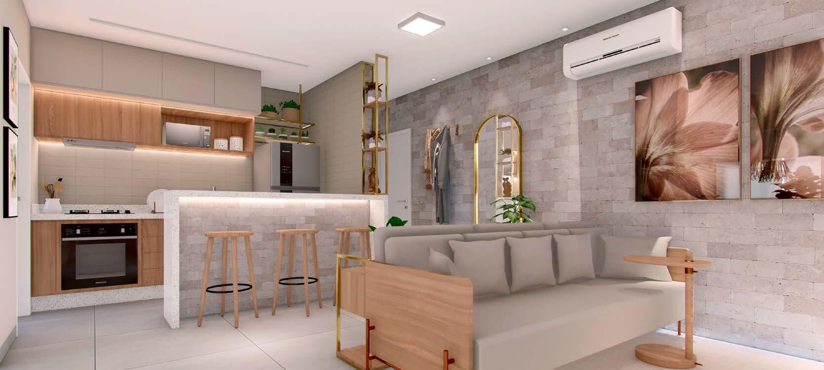 São 77m² de muito conforto, com 2 dormitórios (sendo 1 suíte), varanda gourmet e 2 vagas de garagem . Uma planta moderna, espaçosa e funcional, pensada para acolher sua família com todo o aconchego que vocês merecem .