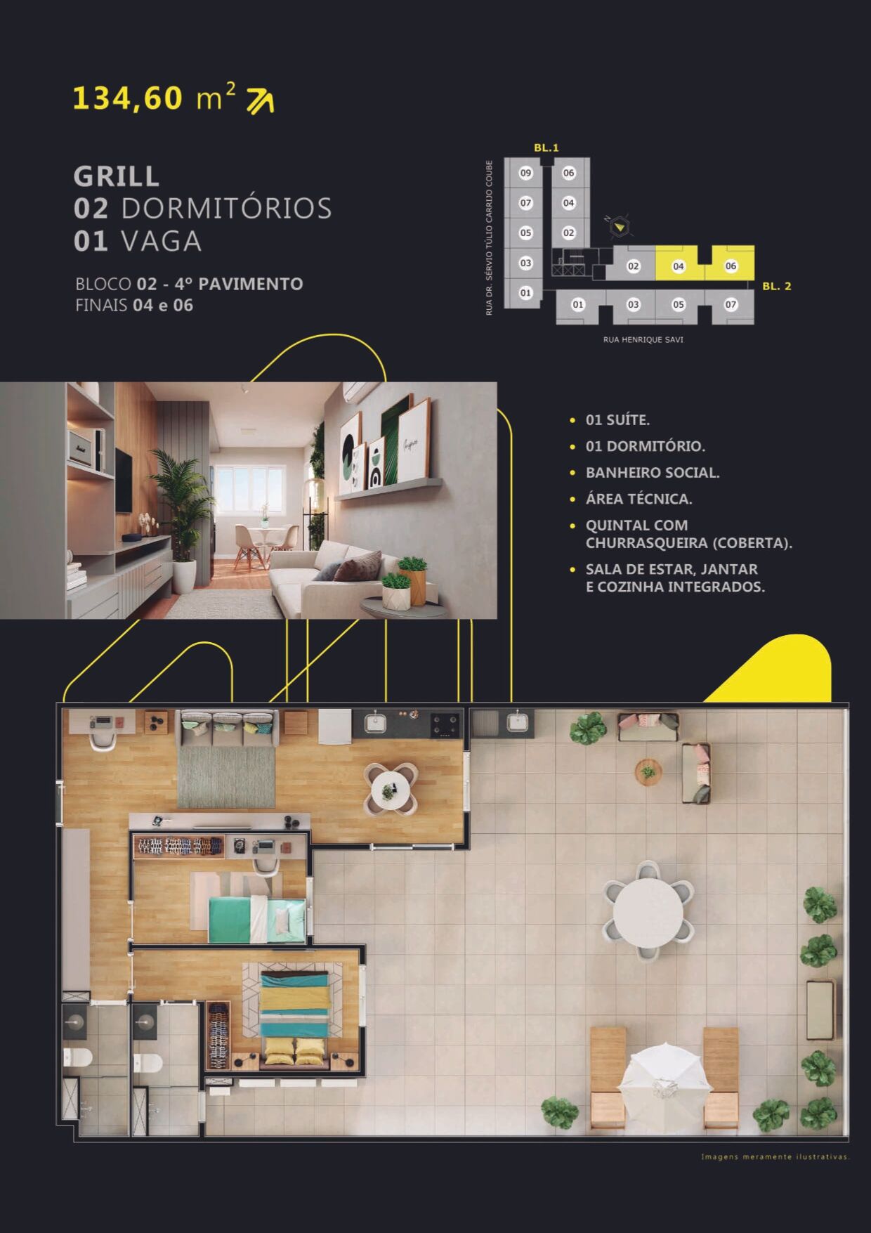 Com 134,60m² de área privativa , cada detalhe foi cuidadosamente planejado para otimizar o espaço sem abrir mão do conforto. O apartamento conta com: