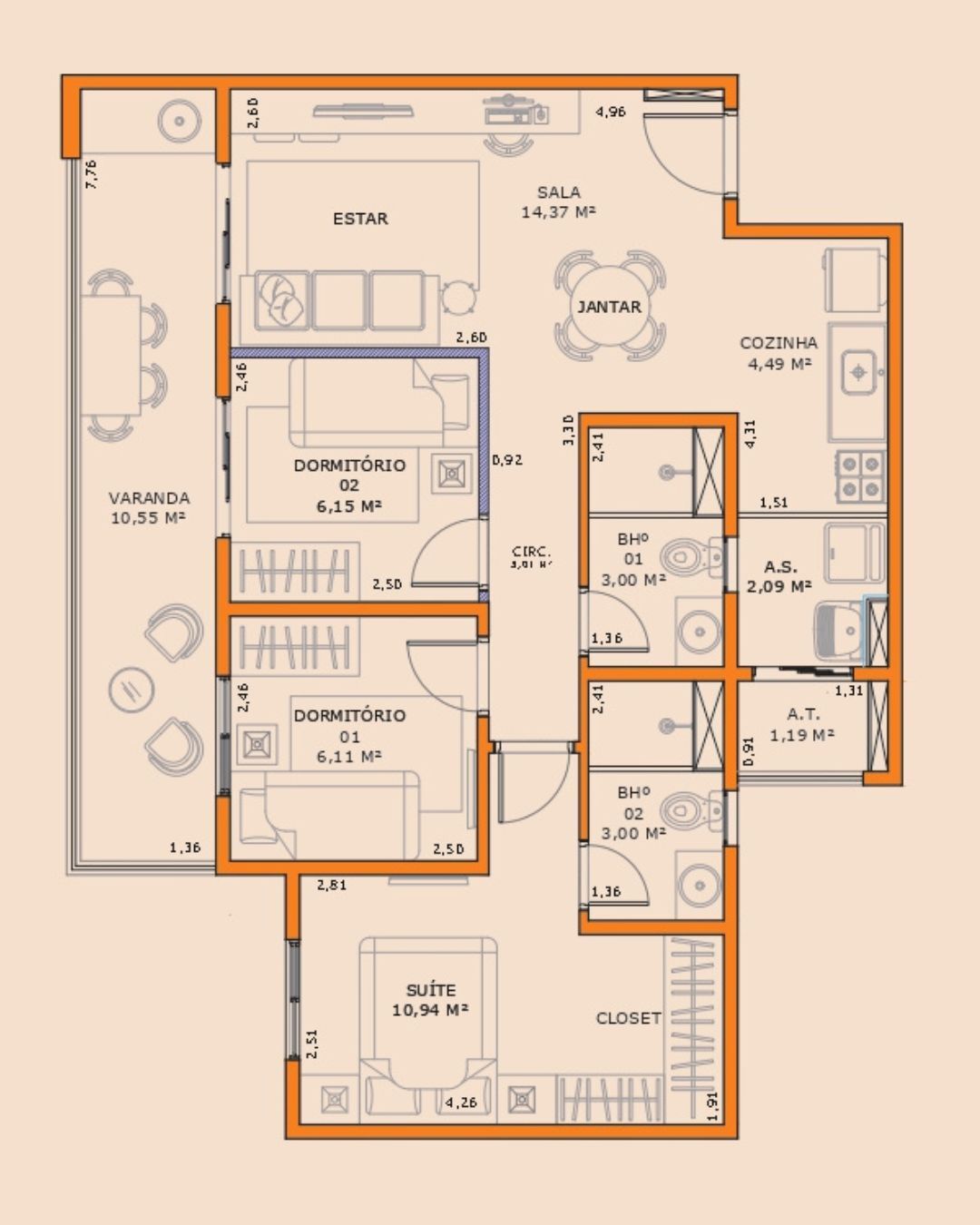 Um projeto desenvolvido para atender as novas necessidades do cotidiano de seus moradores, priorizando a praticidade, espaços acolhedores e uma ampla área de lazer.