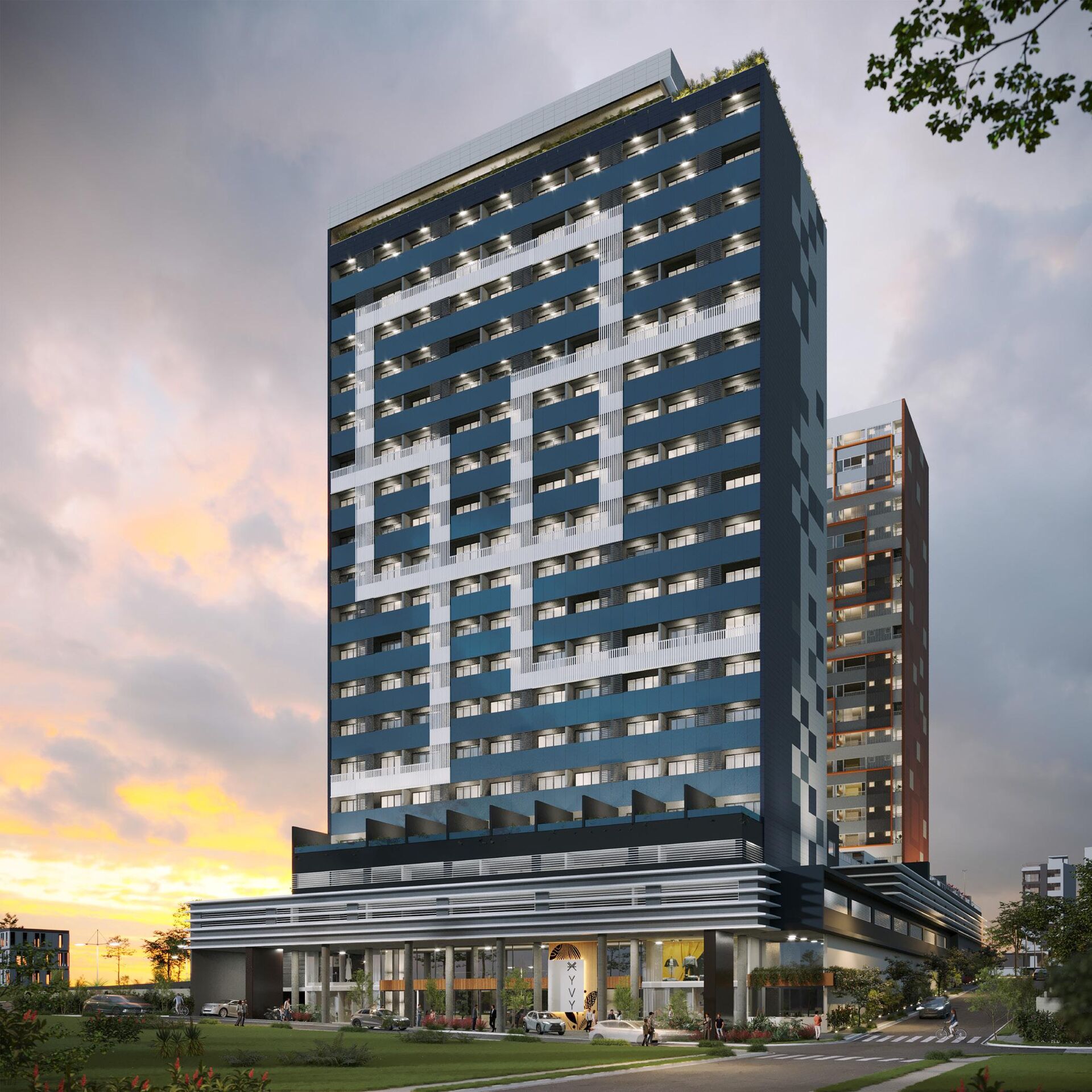O projeto integra o complexo YVY, que reúne três pilares em um só local: Business (salas comerciais), Home (residencial) e Mall (centro comercial).